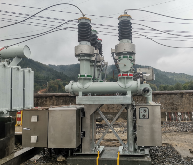 我公司生产的ZHW15-40.5型复合式组合电器(HGIS)系户外三相交流50Hz高压输变电设备,三相分箱结构,用于分、合负荷电流,开断故障电流或转换线路,实现对电力线路的隔离、接地、保护及控制。